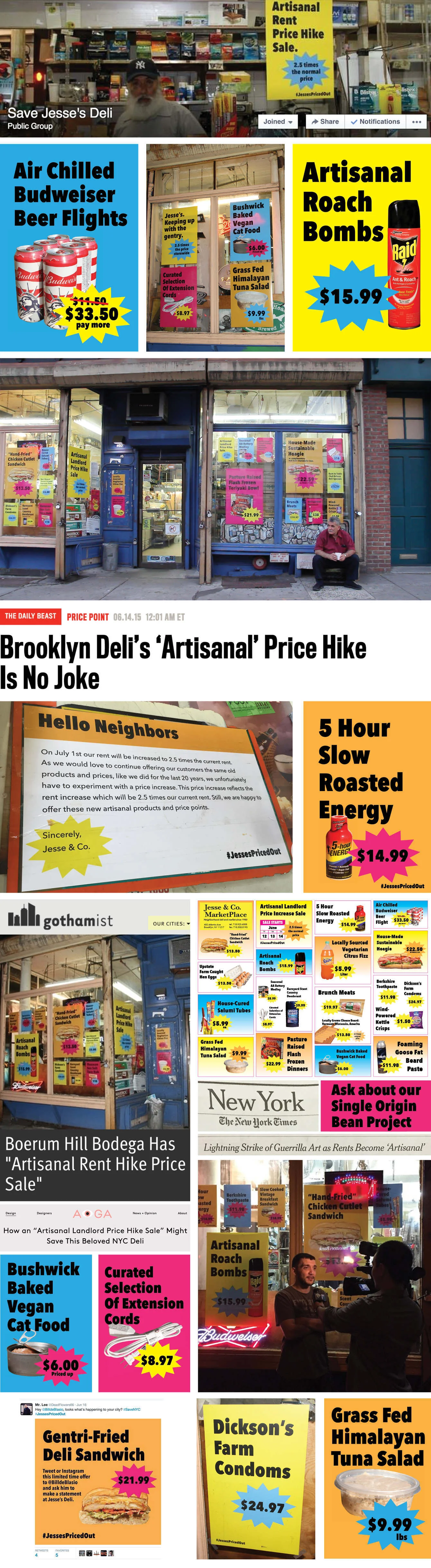 “When we found out Jesse’s rent was being increased by 2.5 times we decided to help them out. We created “the Artisanal Landlord Price Hike Sale,” artisanally renamed every product in their store and adjusted the prices appropriately to 2.5 to mirror their rent increase. Since we hung those posters one midnight in June, Jesse’s got tons of press, tons of Instagram posts, tweets, facebook posts, blog posts and most importantly the support of the whole Boerum Hill community. Furthermore, we dabbled in some politics and helped the Small Business Jobs Survival Act garner enough support to get the majority of votes in NYC.”