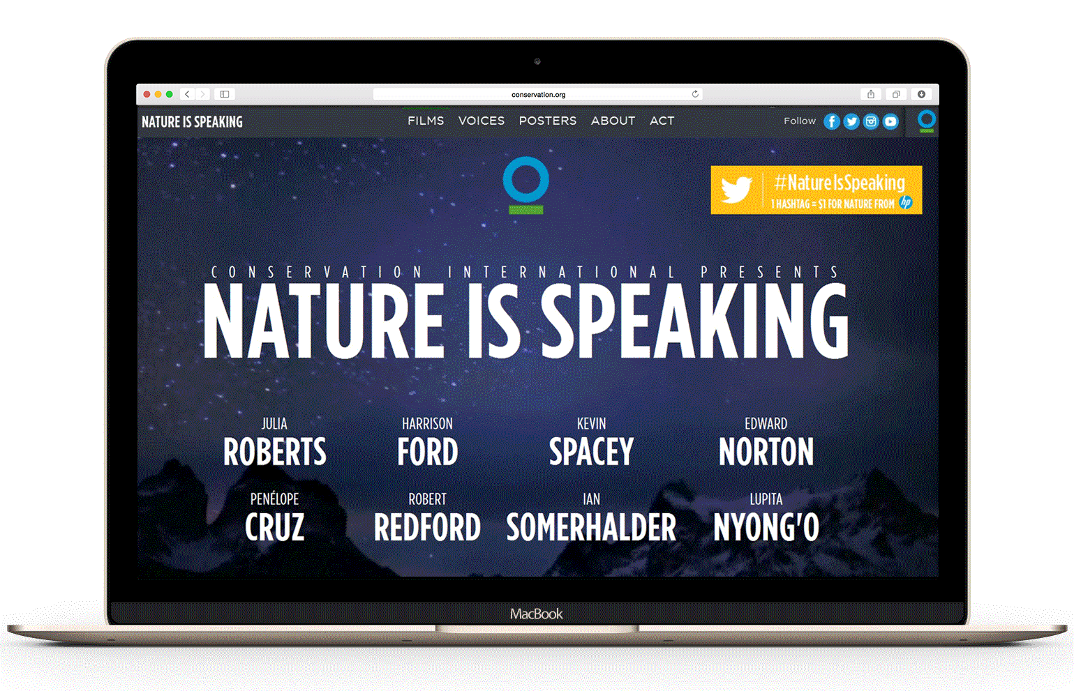 We assembled a cast of world-famous activists and actors to lend their voice to nature, highlighting human civilization's precarious reliance on natural resources by framing a new perspective in the fight against ecological destruction.